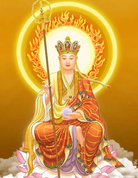 你知道吗?地藏王菩萨手里拿的锡杖,可是有着特别的象征意义哦。它代表着地藏菩萨拔除众生痛苦、给予众生快乐的决心和能力。而明珠呢,则象征着智慧和光明,能指引众生走出黑暗,找到正确的道路。