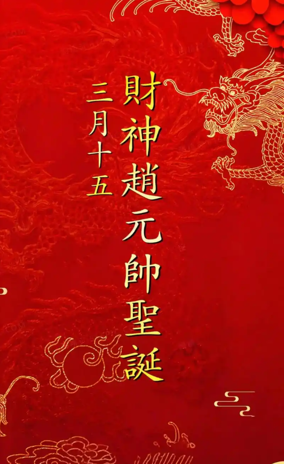 农历三月十五,可是个不一般的日子!老辈人常说“三月十五财神到,金银财宝往家跑”,这一天是武财神赵公明的诞辰,民间俗称“财神诞”。说起赵公明,很多人可能只知道他是财神,但其实他的来头可不小——在《封神演义》里,他本是商纣王的部下,后来被姜子牙封为“金龙如意正一龙虎玄坛真君”,掌管天下财源,连坐骑黑虎都被说成是“偏财之神”。