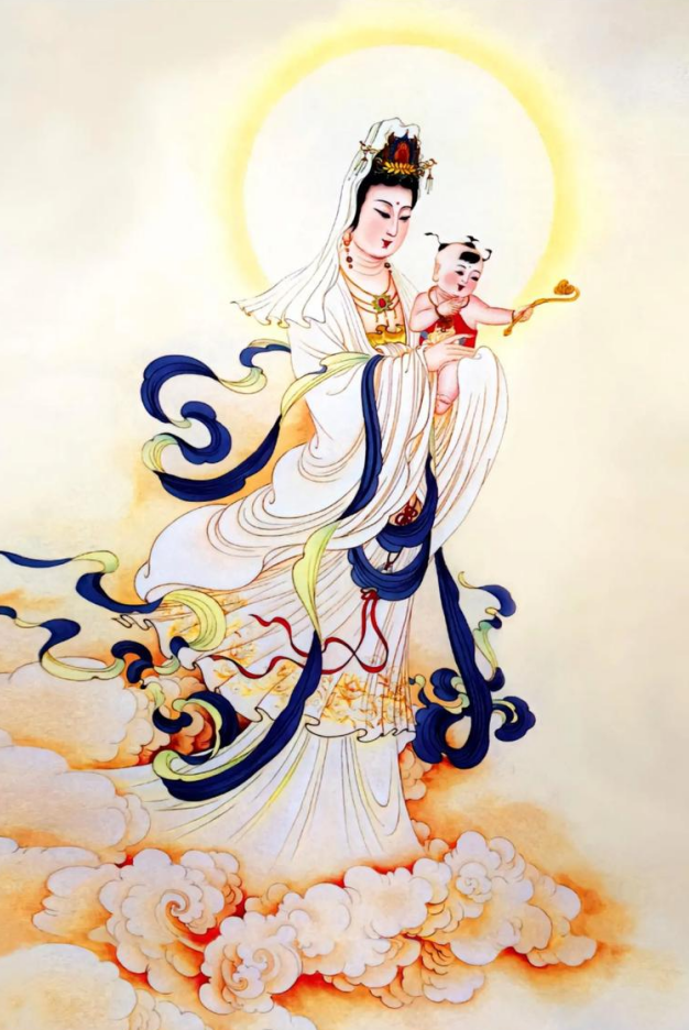 (借观音菩萨的慈悲,祈求孩子带来家庭幸福。)
